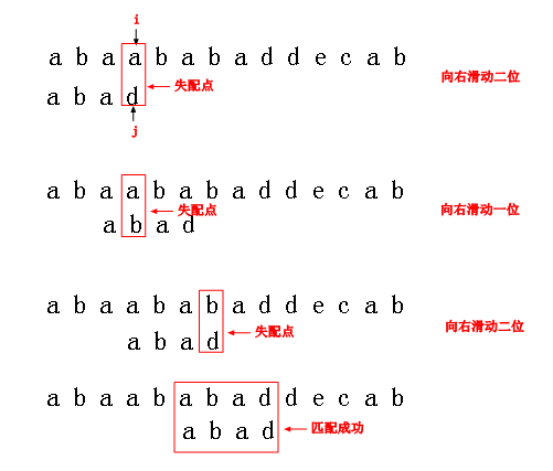 Si-jSi-j+1…Sn-1=P0P1..Pj-1。那么模式P应该向右滑动多少距离?也就是主串中的第i个字符应与模式串中的哪一个字符进行比较?