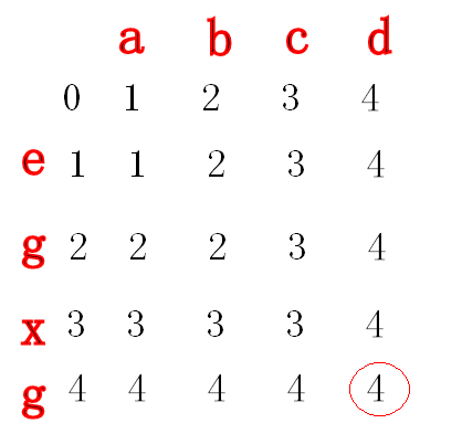 跟“最长公共子序列”一样,我们采用一个二维数组来保存字符串X和Y当前的位置的最小编辑距离。