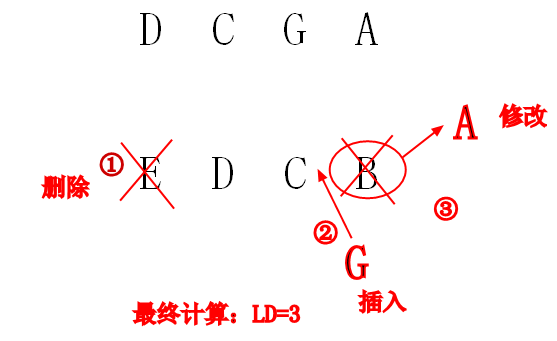 ”A“改成”AB“的编辑距离为1,“A”与“ABA”的编辑距离为2。