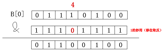 比如要将当前4对应的bit位置0的话,只需要1左移4位取反与B[0] & 即可。