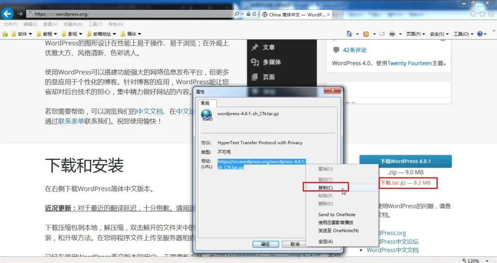 输入地址:https://cn.wordpress.org/ 复制tar版本路径  https://cn.wordpress.org/wordpress-4.8.1-zh_CN.tar.gz