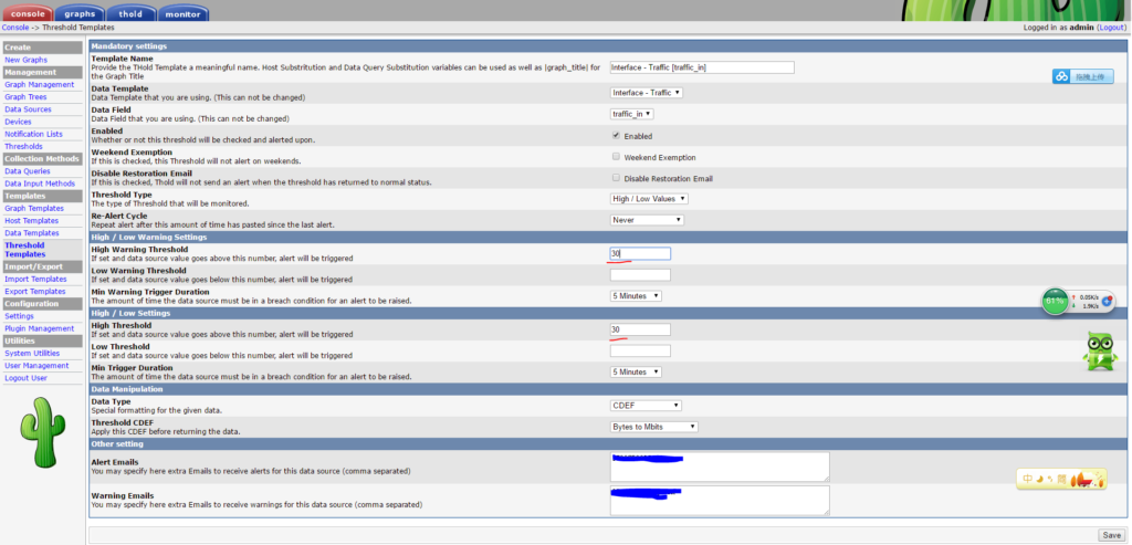5:cacti流量监控告警配置