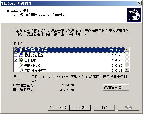1)首先要先安装相应的服务,在Windows添加组件里选择应用程序服务器 证书服务。