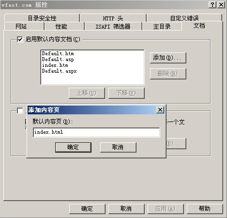 13)右击网站—属性—文档—添加,把自己网站的格式加入