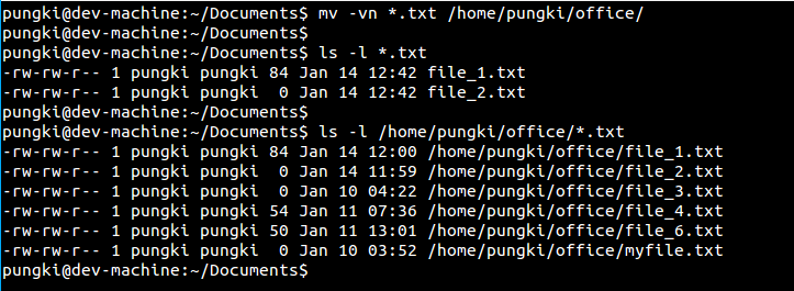 - $ mv -vn *.txt /home/pungki/office