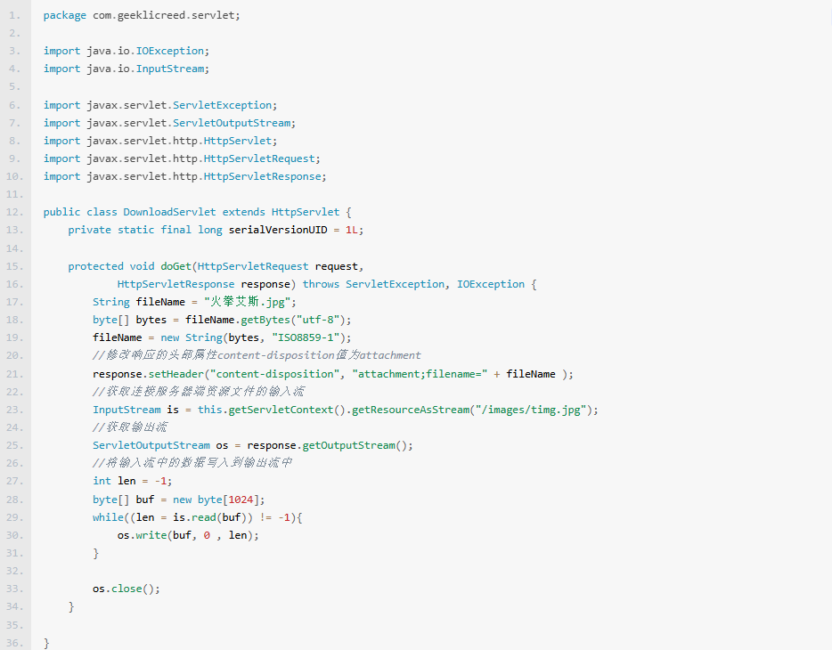 java.io.InputStream getResourceAsStream(java.lang.String path) : Returns the resource located at the named path as an InputStream object.– 启动web应用,点击超链接后,可以看到文件以附件的形式下载: