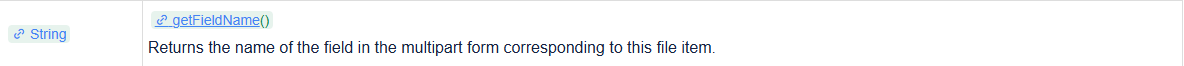 – getFieldName方法:获取对应文件条目(即单个表单项)的name属性值: