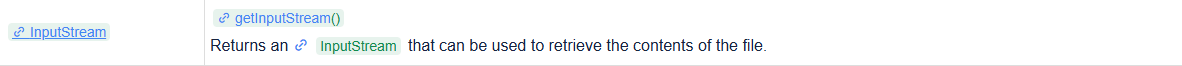 – getInputStream方法:获取输入流,用于取出上传文件中的内容: