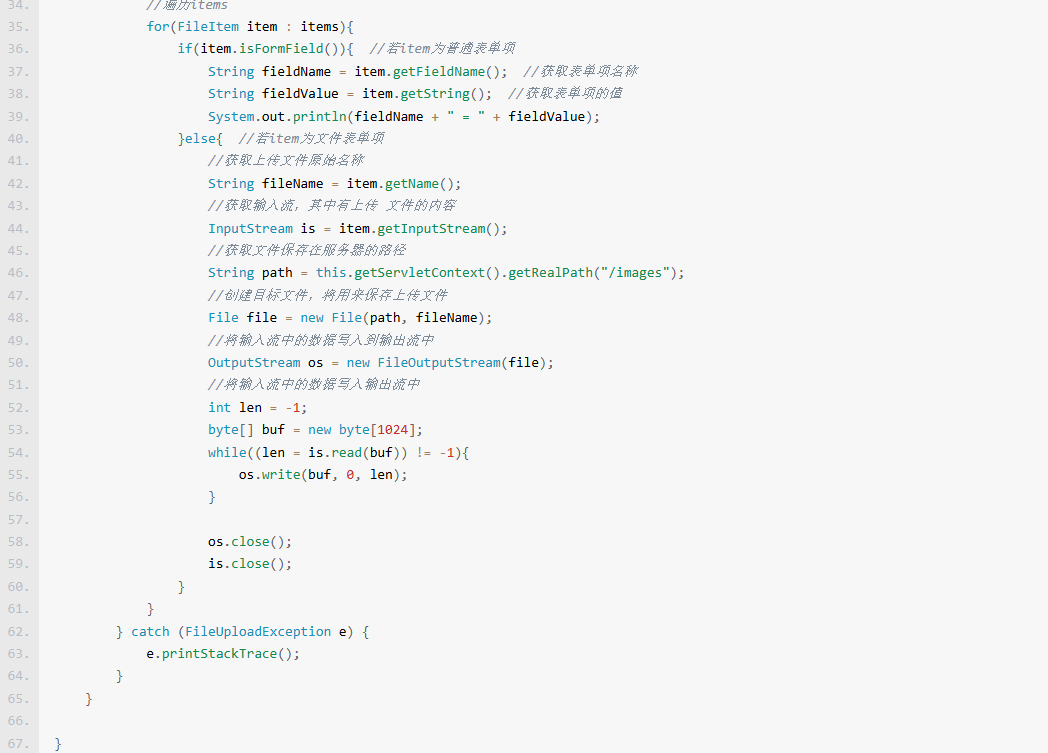 – FileUploadServlet类中的代码相关解释:(也包含使用fileupload jar包文件上传时的常用方法)